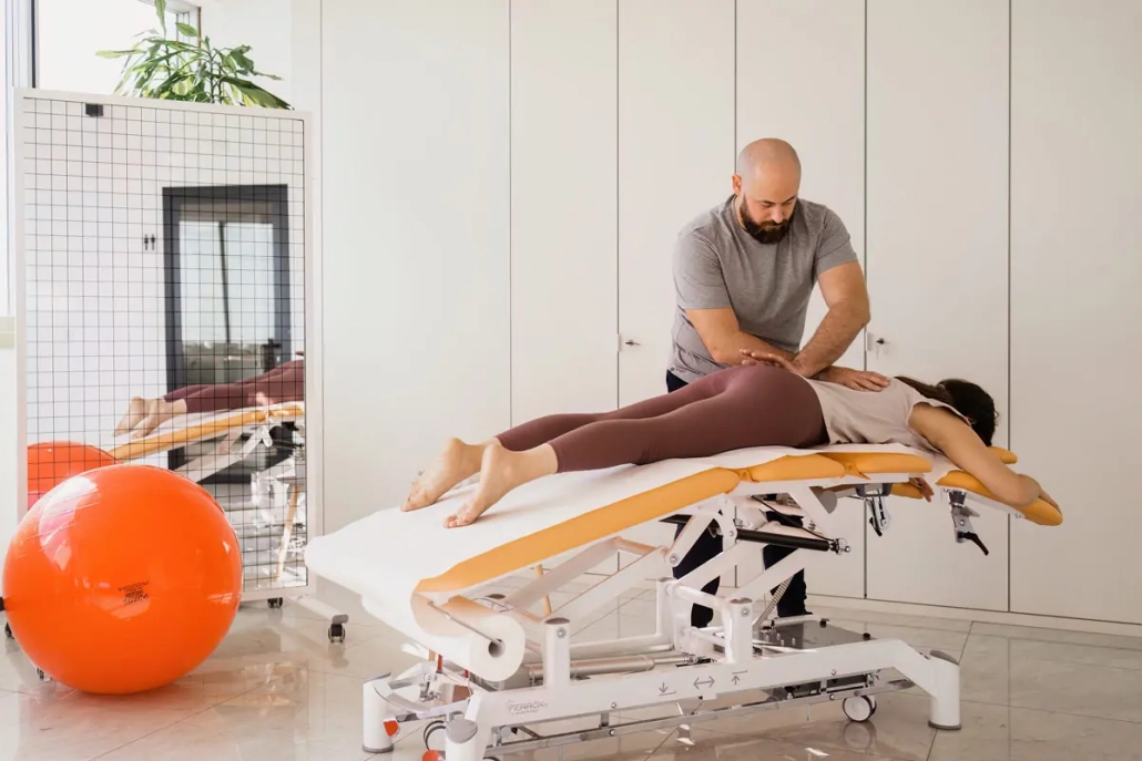 Table multifonctions à hauteur variable pour traitement, kinésithérapie et massages.