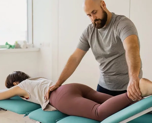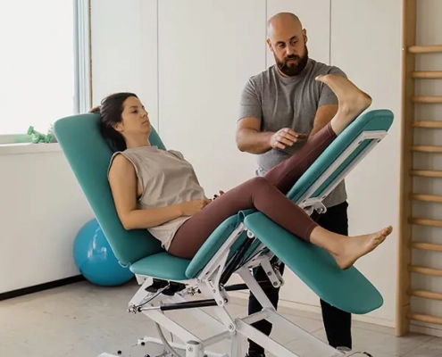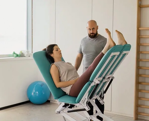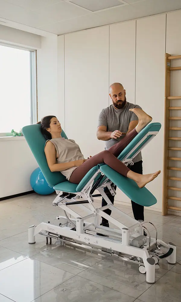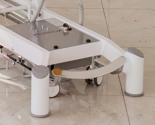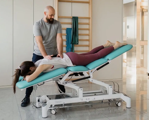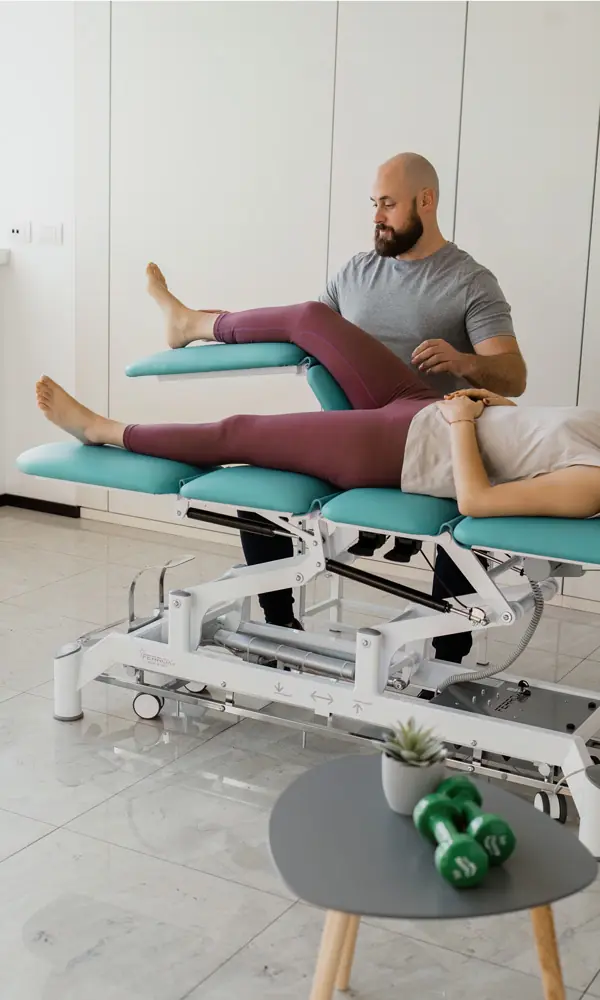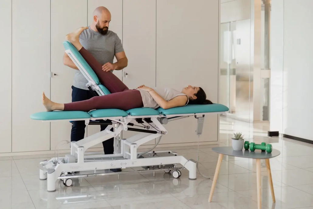 Table à hauteur variable pour examen médical, traitement, kinésithérapie et massages.